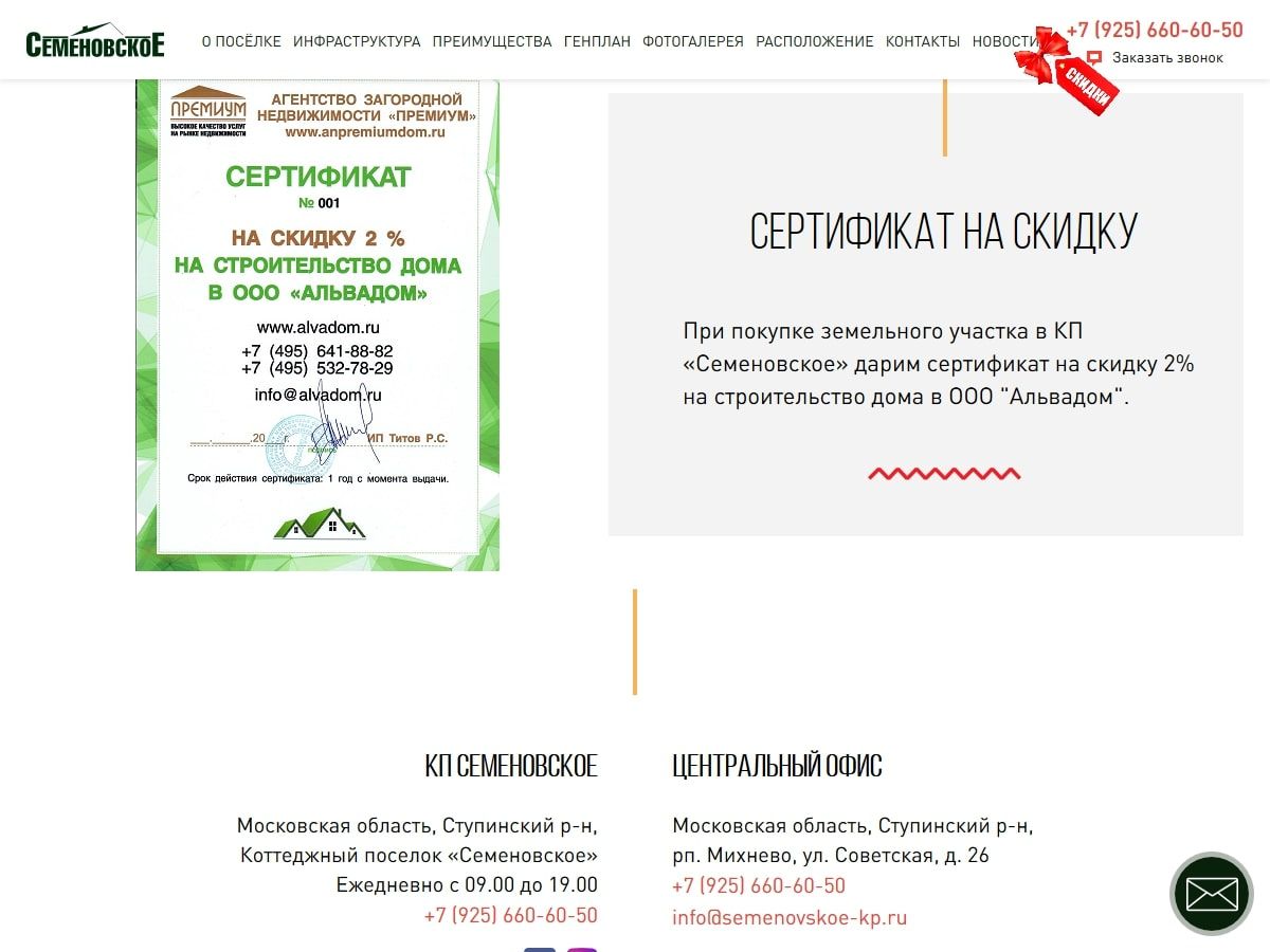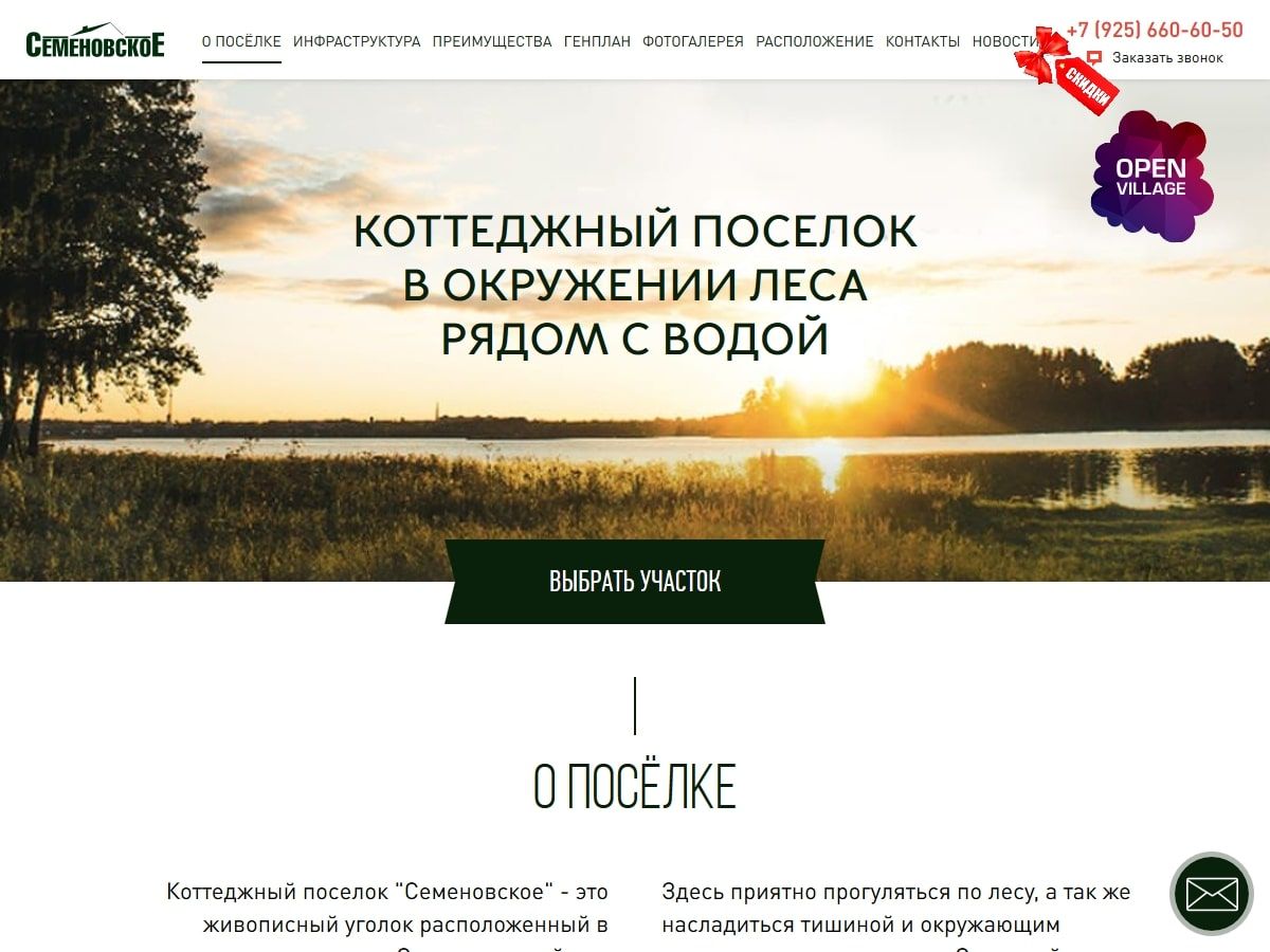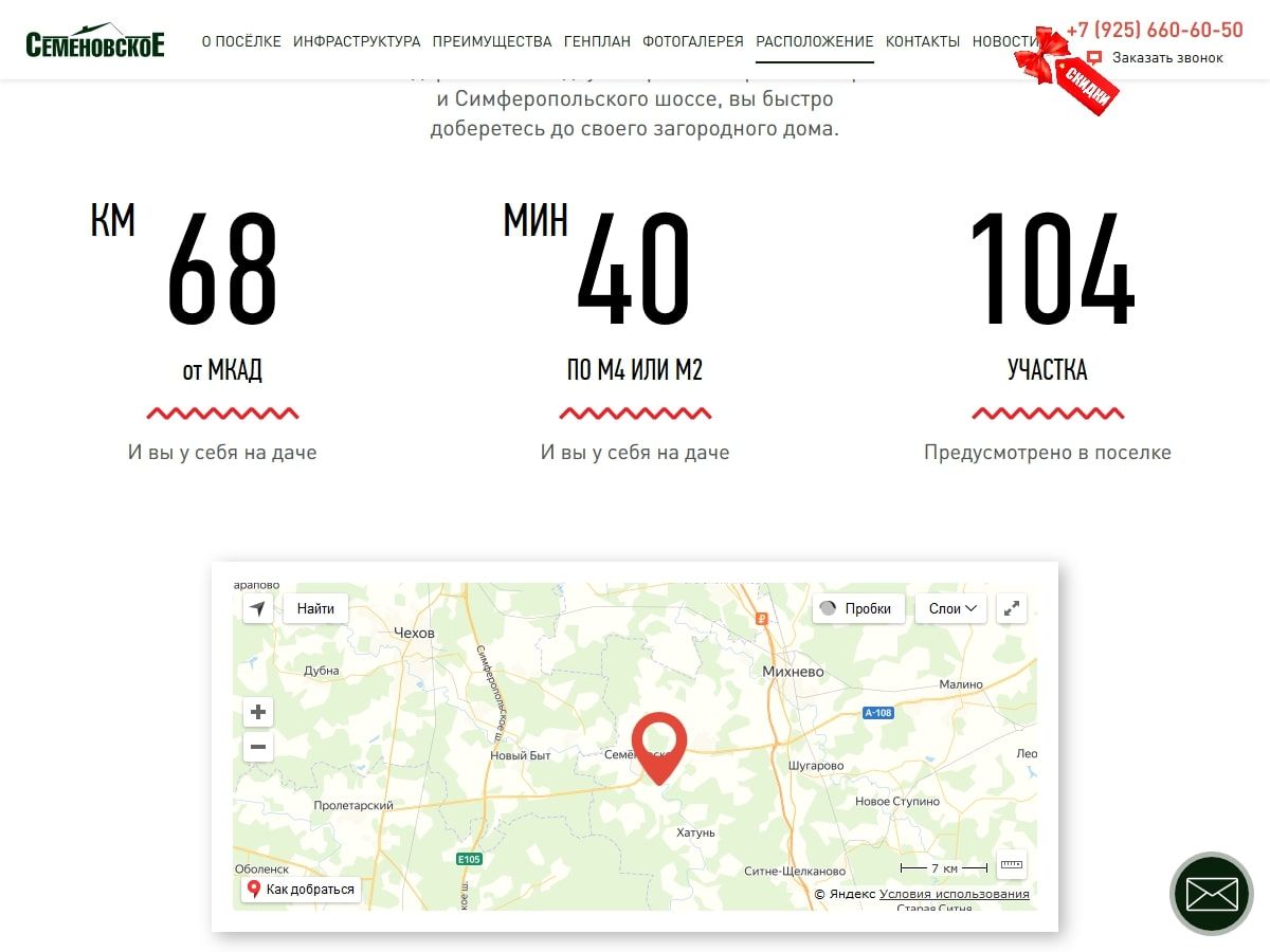 Задача: Обновить посадочную страницу для коттеджного посёлка (Ступинский район Московской области)