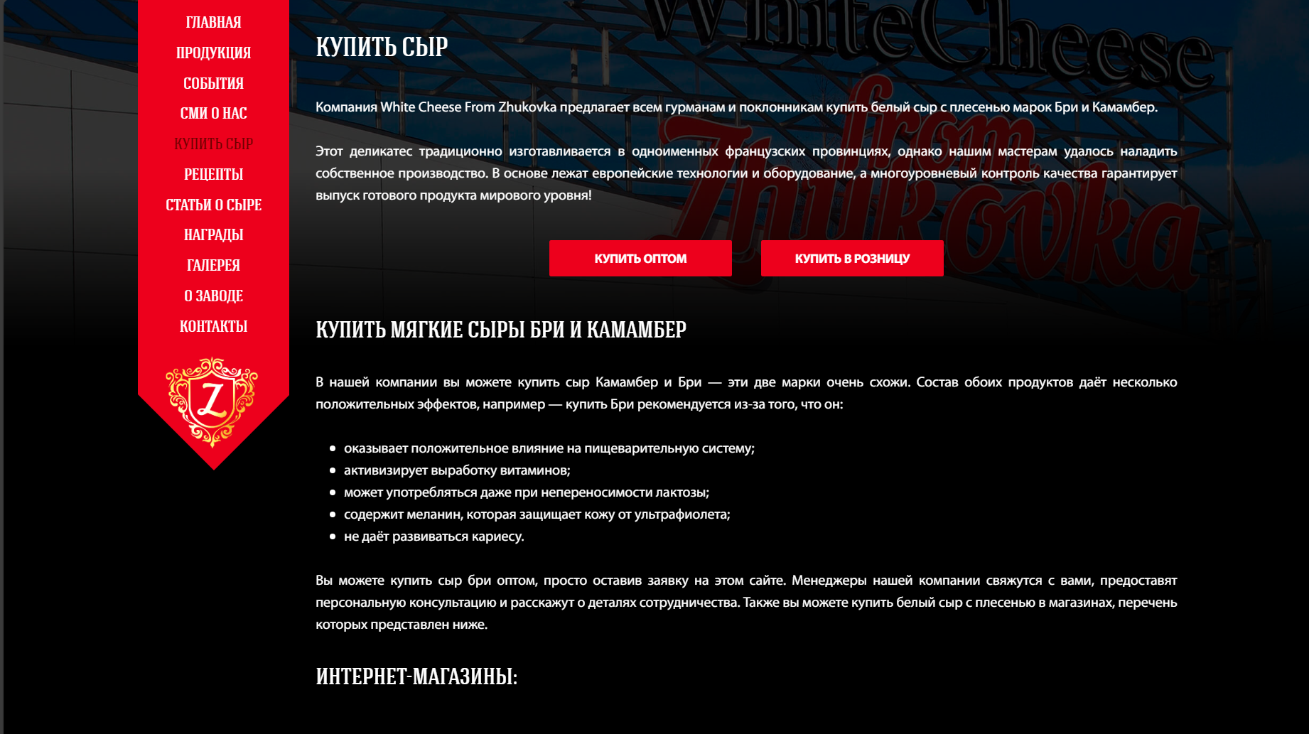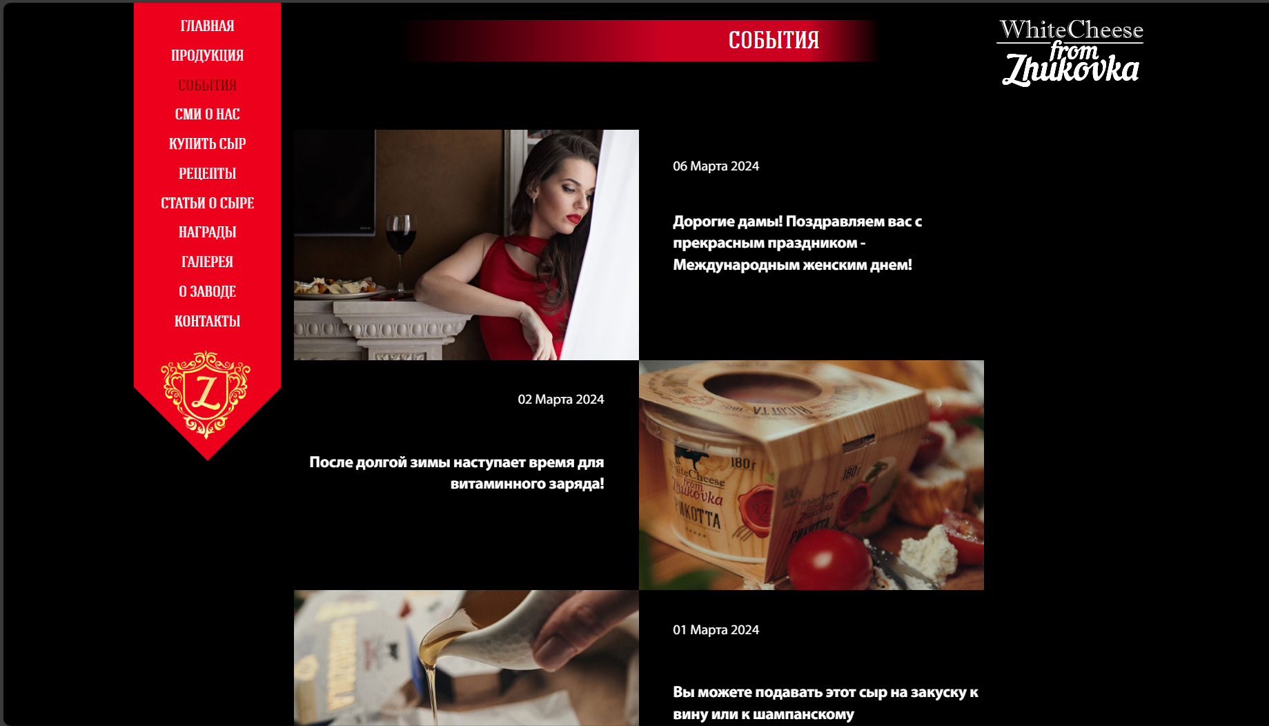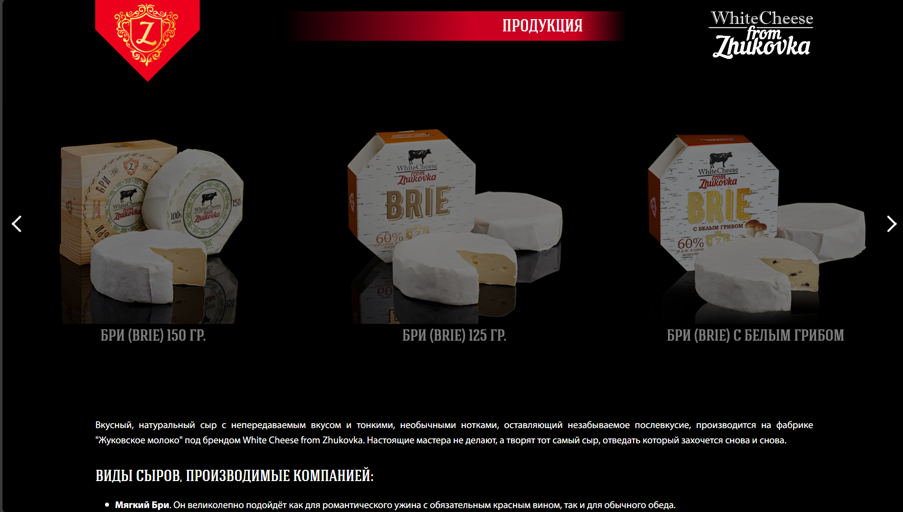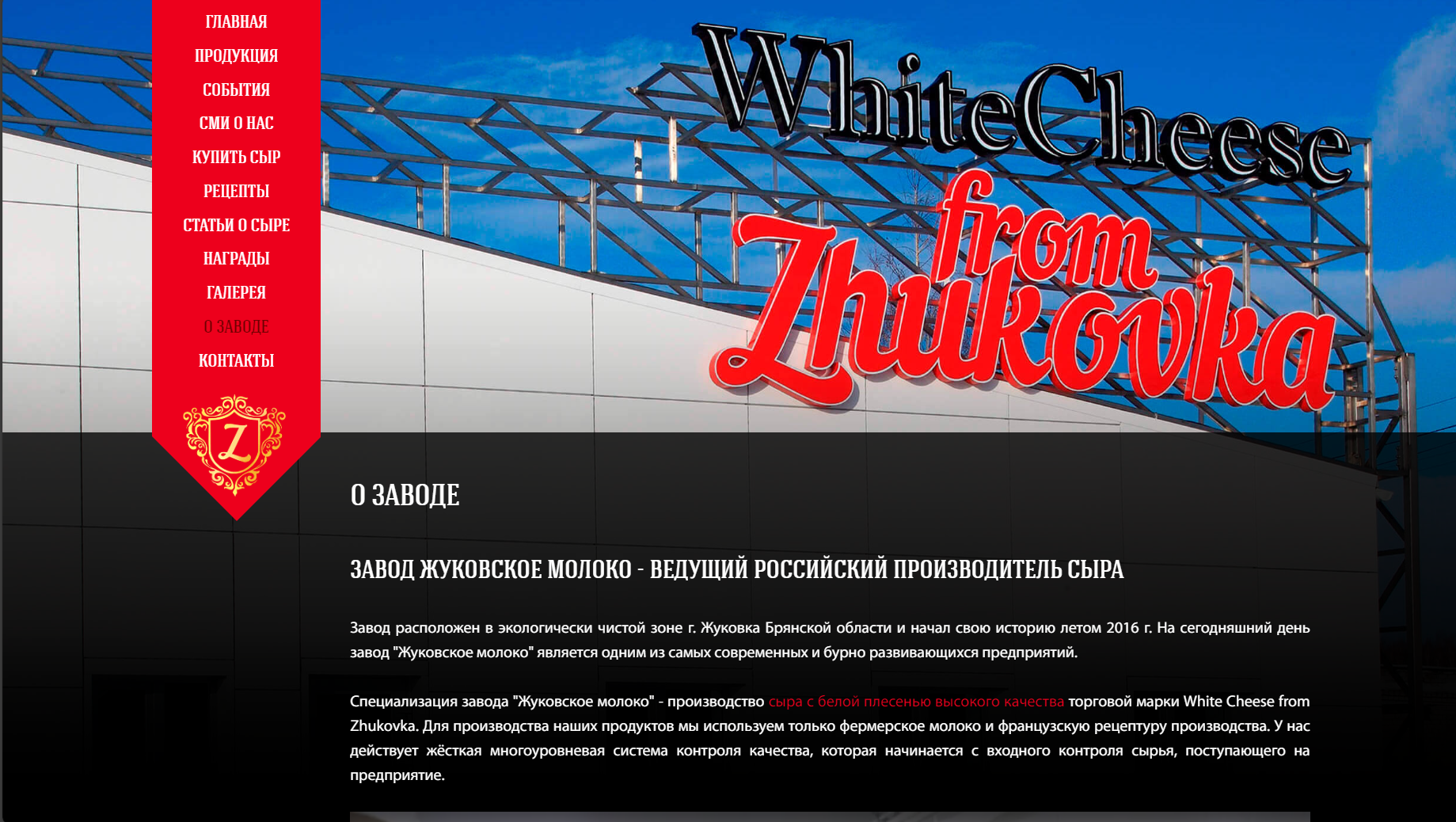 Стартовал сайт завода "Жуковское молоко", который занимается производством сыра с белой плесенью высокого качества торговой марки "White Cheese from Zhukovka".
